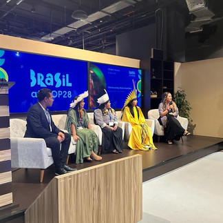 At COP28, the team successfully participated in three major events, each drawing a significant audience! The first event and screening was on December 3rd. It was a remarkable moment, coinciding with the appointment of Sonia Guajajara as Chief which means she was officially representing the Brazilian Government at COP.